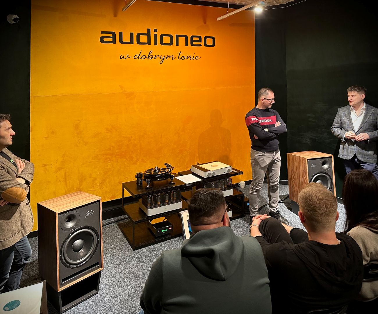 At the Audioneo showroom in Gdańsk, we shared our passion for music and great sound. We had the opportunity to listen to a lecture by Wojtek Pacuła titled “Digital Recordings 1971-2023 on LPs,” and to experience the sound of our Jade 20 speakers in the limited touched by HighFidelity.pl edition – finished in lacquered American walnut veneer and equipped with a custom exposed crossover, high-end wiring, and ports.